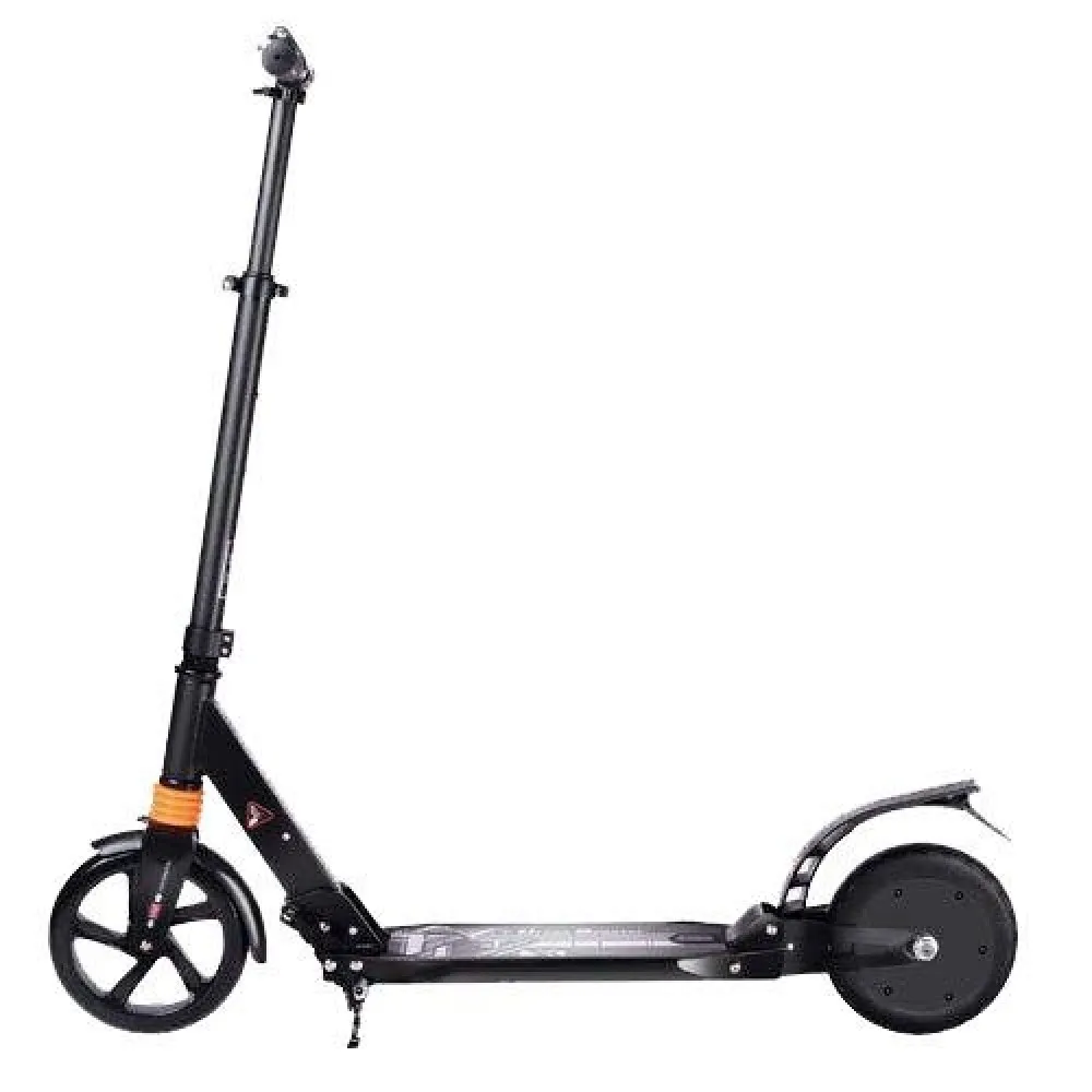 Электросамокат Urban E9 - кинетический, у него отсутствуют привычные рычаги газа и тормоза. Для начала движения необходимо оттолкнуться ногой, а для торможения - нажать на заднее крыло. Транспорт будет поддерживать набранную скорость (до 15 км/ч), пока вы не решите затормозить.