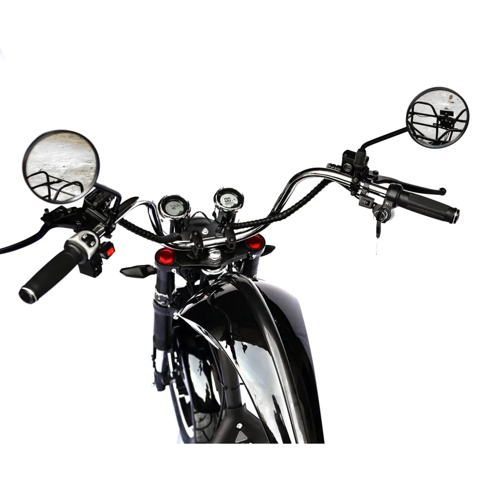 Большие везде проходимые колеса без труда преодолевают бездорожье. Благодаря информационному дисплею водитель может рассчитывать на контроль технических параметров. Возможность езды в вечернее время обеспечена наличием большой светодиодной фары и зеркал заднего вида. Заказать мощный байк оперативно позволит телефонный звонок менеджеру нашего интернет-магазина.