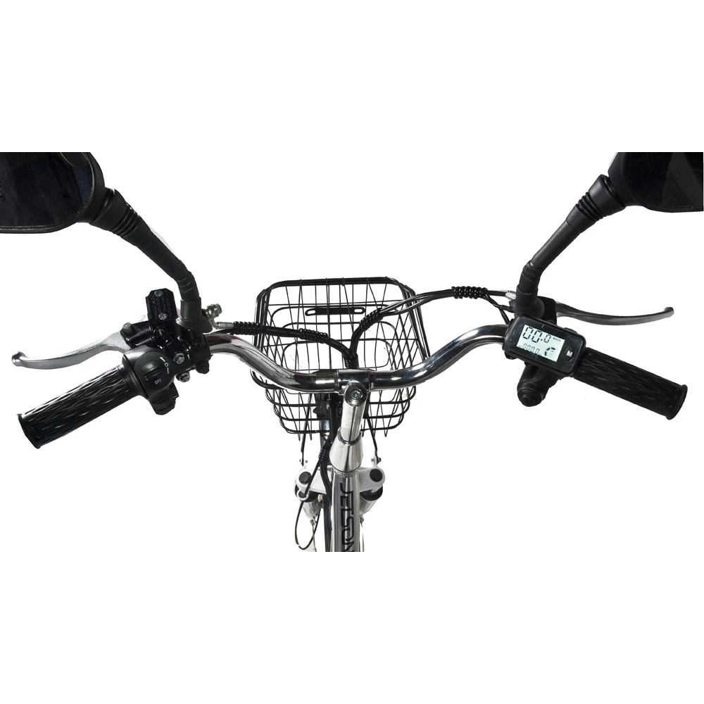 Комфорт пользования и езды обеспечены качественной гидравлической тормозной системой, зеркалами заднего вида, вместительной корзиной и бортовым компьютером. Эксплуатация модели простая. При соблюдении требования производителя велогибрид прослужит райдеру долго, ремонт не потребуется. Купить электровелосипед по цене производителя сейчас поможет телефонный звонок менеджеру интернет-магазина.