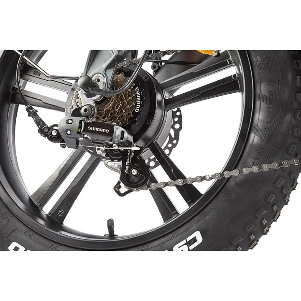 Модель оснащена 7 скоростным цепным типом передач, благодаря которому можно ехать спокойно или наслаждаться возможным максимумом. Оснащенный качественной тормозной системой велогибрид безопасный в эксплуатации. При этом не стоит забывать о покупке дополнительной защиты для ездока.