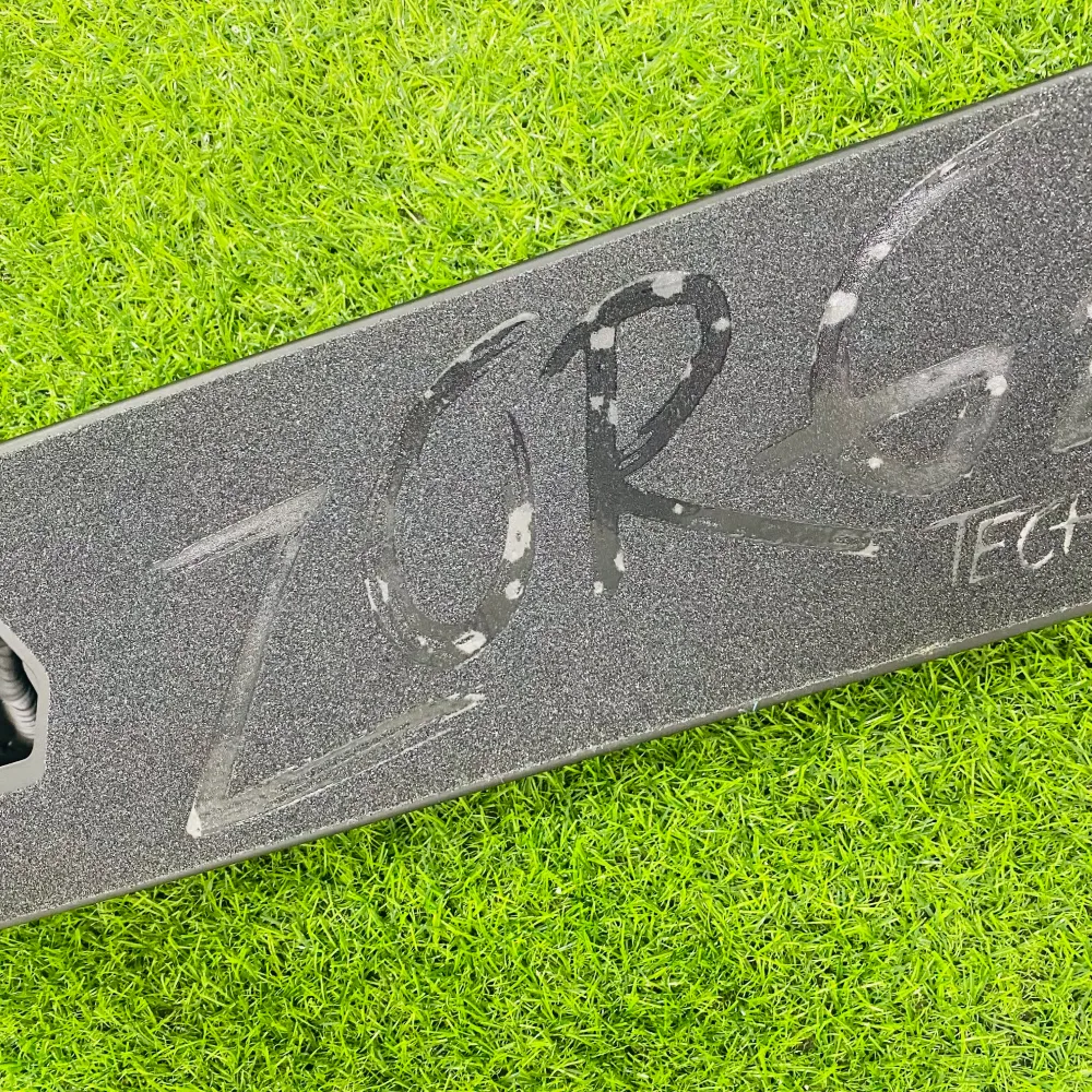 Широкая алюминиевая дека стала намного удобнее для езды за счет своего размера 14*56*41 см.  Классическими остались и заваренные скошенная передняя ее сторона и квадратная задняя. Новинкой в этой модели является фендер, который защищает самокат от непреднамеренного торможения. Привычный стальной тормоз тоже не стали убирать. Алюминиевая фрезерованная вилка соединяется с высоким рулем системой SCS-компрессии  с четырех болтовым зажимом на болтах-"шестерках”. Вращения колес обеспечивает подшипник ABEC 9 Chrome. А сами колеса выполнены из полиуретана с дисками из алюминия.